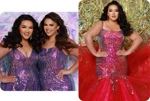 The original Collection that launched the business and earned me the honorary title of the “Fairy Godmother of Plus Size Prom”. An assortment of trendy Prom dresses with proven silhouettes to flatter the curvy teen.