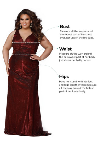 Compare your customer's measurements with the bust, waist and hips measurements on the Sydney's Closet size chart.